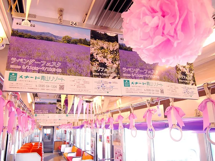 忍者列車の伊賀鉄道とラベンダーとハーブのメナード青山リゾートがタイアップし、地域の活性化と観光スポットの拠点づくりに向けて取り組む、癒し効果抜群の香りいっぱいの列車を運行します。