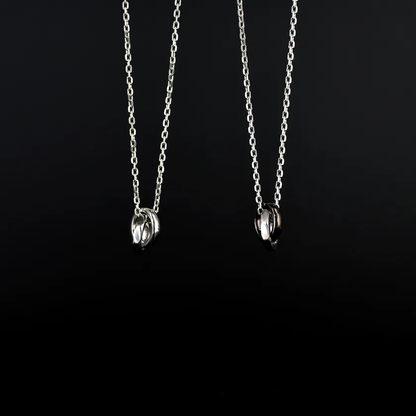 ピュアなシルバーとダークなブラックの2色から選べる、“チーム”を意味するネックレス。この2つのリングが途切れず繋がっている様子は、『永遠に続く人間関係』を示しています。