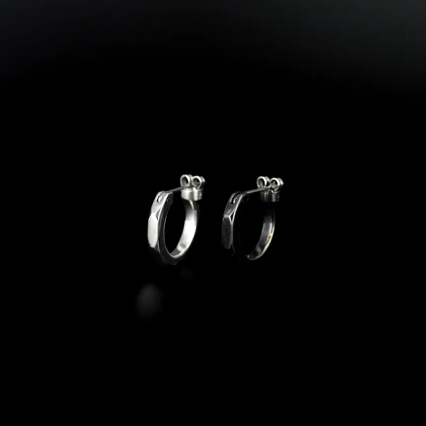 ピュアなシルバーとダークなブラックの2色から選べる“チーム”を意味するクロッシングピアス。独自開発の留め具は壊れにくさが自慢です。安心して着けていられるよう、ポスト部分にはサージカルステンレス素材を使用しました。