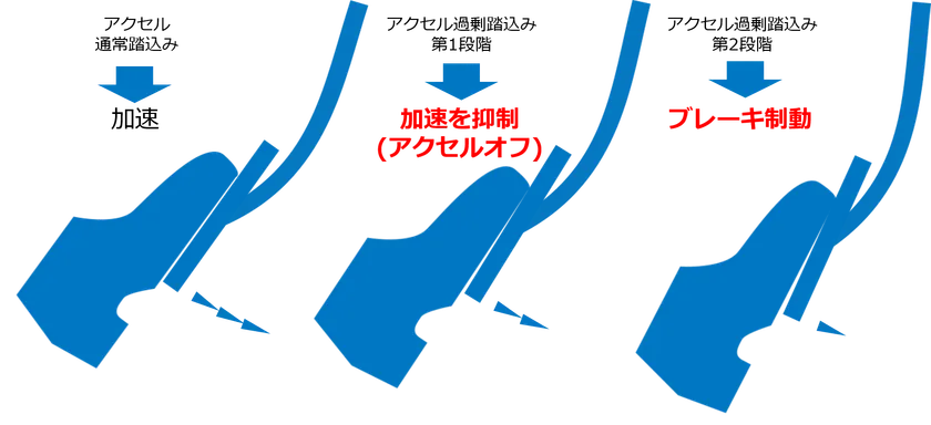 「ペダル踏み間違い急発進抑制装置」は、障害物を検知する機能の有無はありますが、いずれも事前に設定された条件を満たす際に「アクセル」機能を停止し、急な加速を抑制するといった動作をする装置です。これらの装置は、「ブレーキ」と誤って「アクセル」を踏み込んだ際に、ある一定の条件の場合に「アクセル」機能が停止されるため、加速は継続しませんが、一方でドライバーが冷静に「ブレーキ」を踏み込まない限り止まらない装置です。一般に踏み間違いが生ずるのは、高齢者などに多いとされていますが、若年層においてもパニック時においては発生しており、冷静に「ブレーキ」を踏み直すことができるケースは少ないものと想像されます。