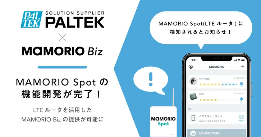 株式会社PALTEK(本社:横浜市港北区、代表取締役社長:矢吹 尚秀、証券コード:7587、以下 PALTEK)は、MAMORIO株式会社(本社:東京都千代田区、代表取締役:増木 大己、以下 MAMORIO)が提供するIoTを活用した法人向け紛失防止総合支援サービス「MAMORIO Biz」で活用される、「MAMORIO Spot」機能を組み込んだLTEルータの開発が完了しましたので、お知らせいたします。