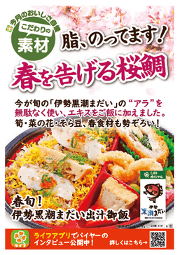 【首都圏ライフ】ライフオリジナル「伊勢黒潮まだい」 を余すことなく使用した「春旬!伊勢黒潮まだい出汁御飯」が新発売!!