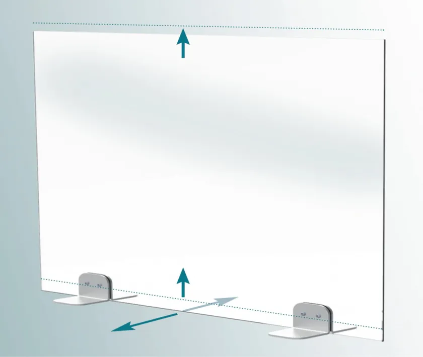 特徴は、工作機械用安全窓製造の技術でカットした5mm厚のポリカーボネート板にヨロイカバーの製造技術で加工したステンレス製台座。ポリカーボネートは、ビニールシートより清掃しやすく常に清潔を保つことができ、またアクリルよりも落下などでの破損リスクも低く、これらプラスチックに比べて燃えにくいため、火災リスクも軽減でき、より安全です。またパネルの高さは任意で調整可能です。書類のやり取りが必要なカウンターなどでは下部に最大20mmの隙間が作れます。高い精度が必要とされる工作機械製造の技術により板と台座がしっかりと固定されます。そのうえ組み立て・分解・高さ調整等がとても簡単な構造となっています。