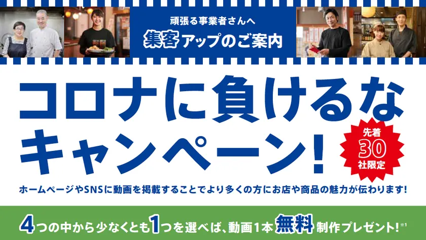 都内の店舗・企業を応援!先着30社に 無料動画制作をプレゼント 「コロナに負けるなキャンペーン!」開始