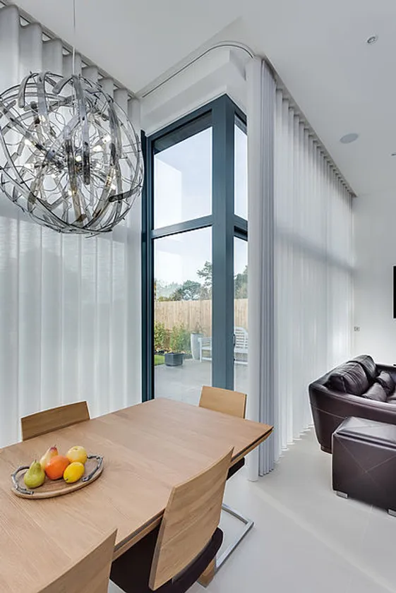 2Cのローラーランナーを使用し、中重量級サイズのカーテンや大きな窓に適したカーテントラック。天井埋込も可能です。