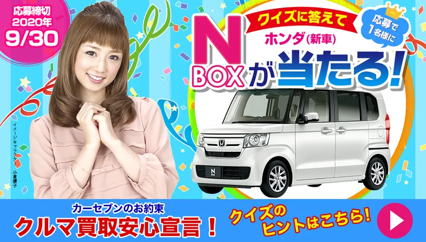 中古車の販売、買取のフランチャイズチェーン「カーセブン」を運営する、株式会社カーセブンディベロプメント(本社:東京都品川区、代表取締役社長:井上 貴之、以下 カーセブン)は、クイズに答えて「ホンダ N-BOX(新車)」が当たるオープン懸賞を2020年6月1日よりスタートしたことをお知らせいたします。