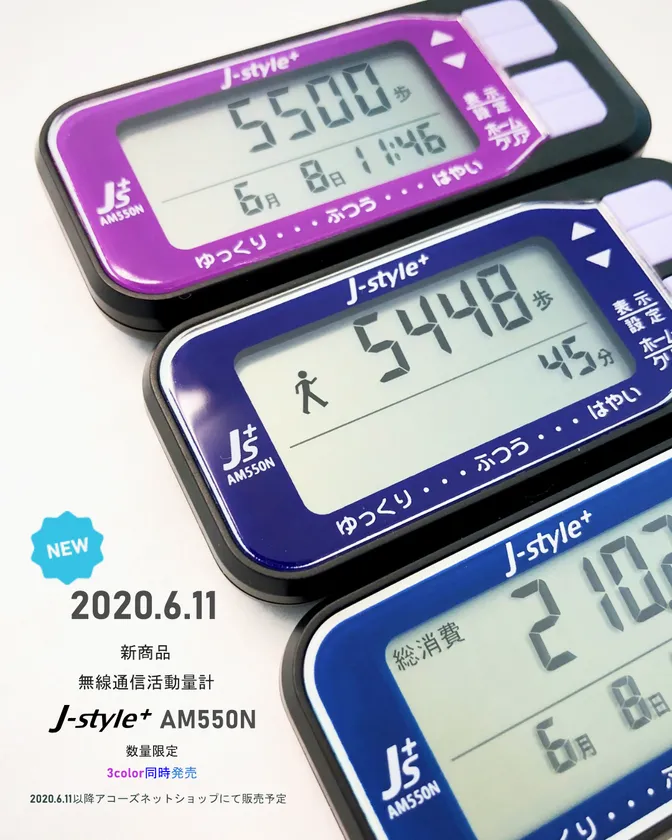 株式会社アコーズ(本社:長野県飯田市、代表取締役:佐々木 邦雄、以下 アコーズ)は、自社ブランドJ-style+に新たなラインナップとして、気圧センサーを搭載し階段や坂道などの高低差を自動検知し活動量に反映することができる「J-style+ 無線通信活動量計 AM550N」(以下 AM550N)を2020年6月11日からインターネットで販売開始しました。