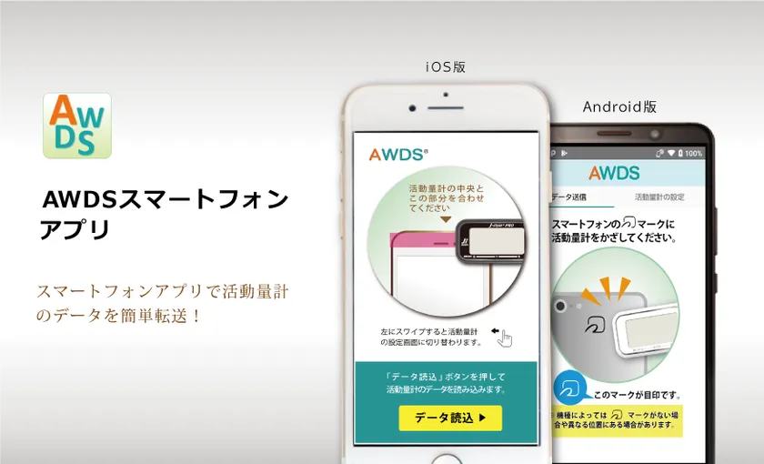 また、健康管理システム「AWDS」にも対応しており、AWDS_PDVやスマートフォンアプリ「AWDS Uploader」(iOS、Android)を使ってデータを簡単に転送できます。