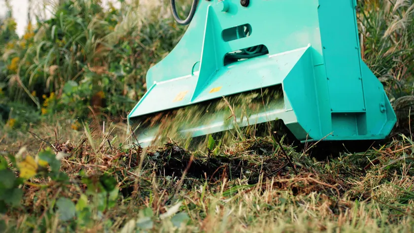 ・雑草から竹やぶ・雑木まで、スピーディーに刈り取る油圧ショベル用のアタッチメント