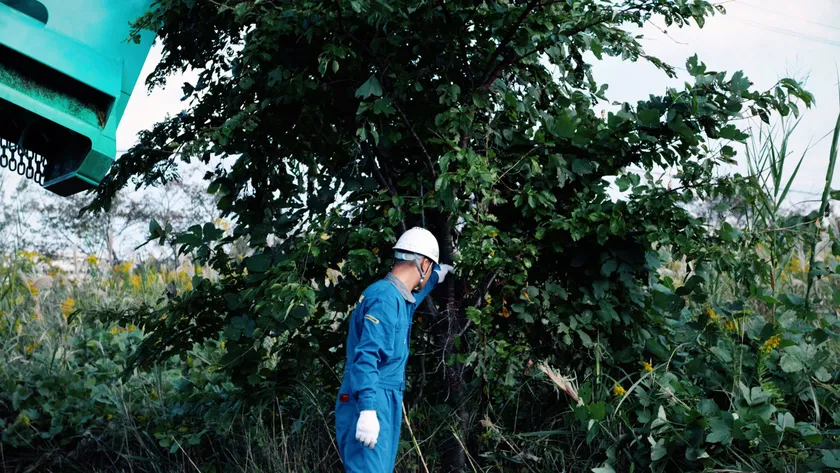 クサカルゴンの毎分数千回転の速度で回転するハンマーナイフが、高さ約4m、幹の太さは直径13cmある難敵「カジノキ」を攻略する場面は必見です。普段の生活ではなかなか見る事の出来ない、壮大なスケールでの草刈りの様子をお楽しみいただけます。