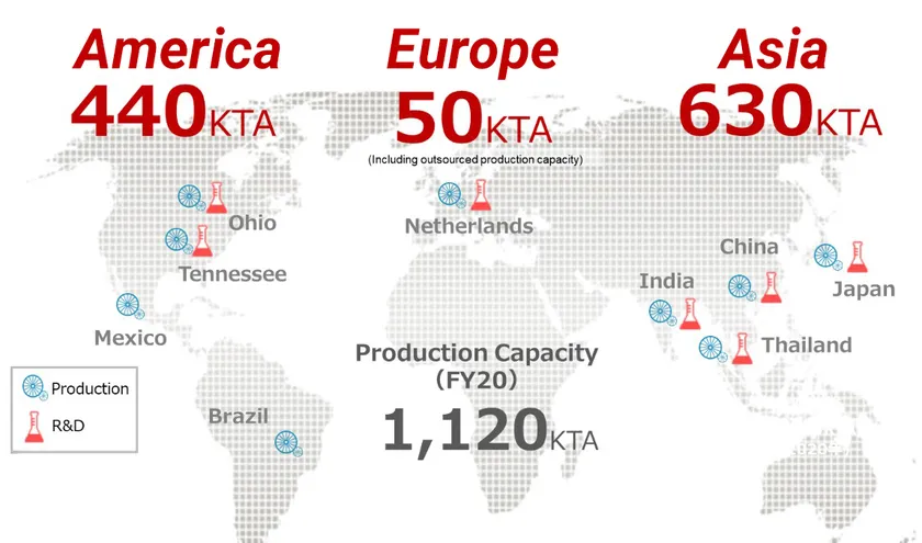 三井化学グループは現在、世界8つの地域(日本、アメリカ、メキシコ、欧州、タイ、中国、インド、ブラジル)に製造拠点を、6つの地域(日本、アメリカ、欧州、タイ、中国、インド)に研究拠点を有し、自動車の軽量化に貢献する高品質なPPコンパウンドの製造・販売・研究体制を強化しています。