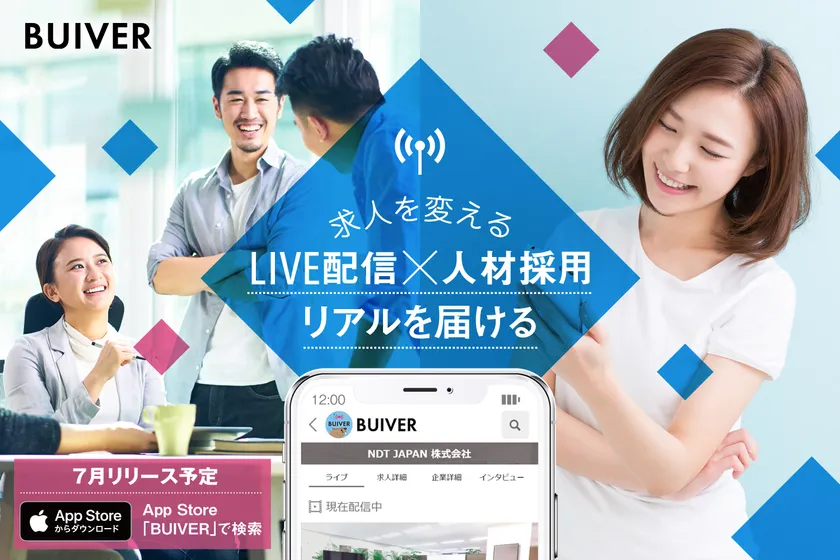 株式会社BUIVER(本社:大阪府大阪市)は、業界初となるLIVE配信で企業PRができる求人アプリ「BUIVER(ビーバー)」を7月にリリースいたします。