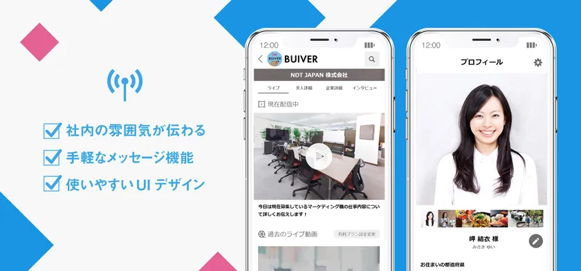 「BUIVER(ビーバー)」は、企業のリアルを伝えるLIVE配信アプリで、働いている様子や会社説明などのLIVE配信を行うことで、透明性の高い情報と今まで伝えにくかった社内の雰囲気までも伝えることができます。