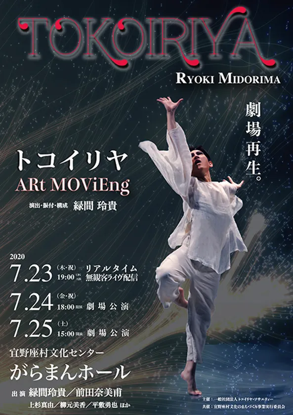 沖縄県出身のバレエ・アーティスト 緑間玲貴が代表理事の一般社団法人 トコイリヤ・ソサエティー(所在地:東京都台東区)は、時勢柄開催不可となったバレエ公演に代わる、無観客劇場公演のリアルタイム配信と新規撮影からなる舞踊映像作品をWEB配信する新企画「トコイリヤ ARt MOViEng」を、2020年7月23日(木・祝)に開催することをお知らせいたします。