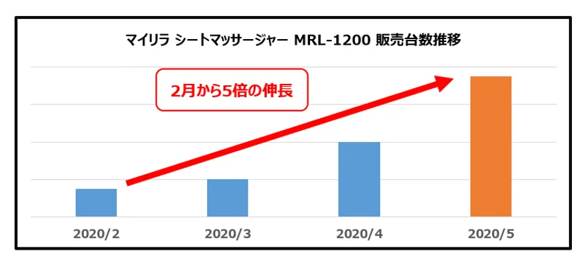 これは、新型コロナウイルス感染拡大防止のための外出自粛期間中に、外で伸び伸びと体を動かすこともままならず、家の中で過ごす時間が増えた方の自宅でできるマッサージへのニーズが高まったことから、寝姿勢で首から腰まで気軽にマッサージができるシートタイプのマッサージャー「MRL-1200」への注目が高まったものと見られます。