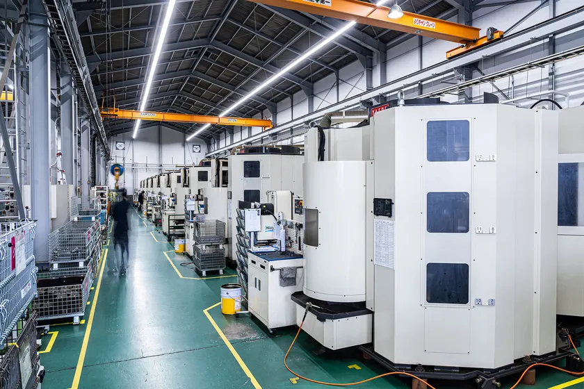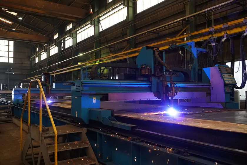 鋼板溶断機、溶接機、加工機(横型マシニングセンタ主)、塗装ブース、天井クレーンなど