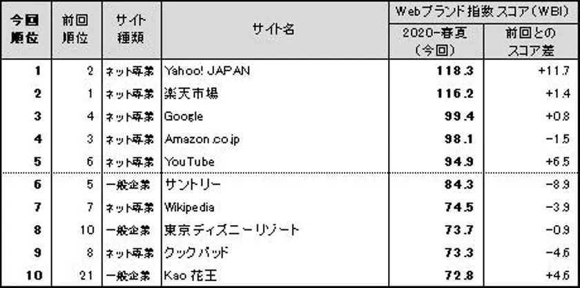 ●総合ランキングは「Yahoo! JAPAN」が2018-秋冬以来の首位を獲得