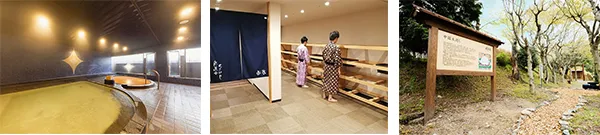 左から)ホテル男性大浴場「碧翠」、ホテル大浴場定員入場制限は5名に、森林浴