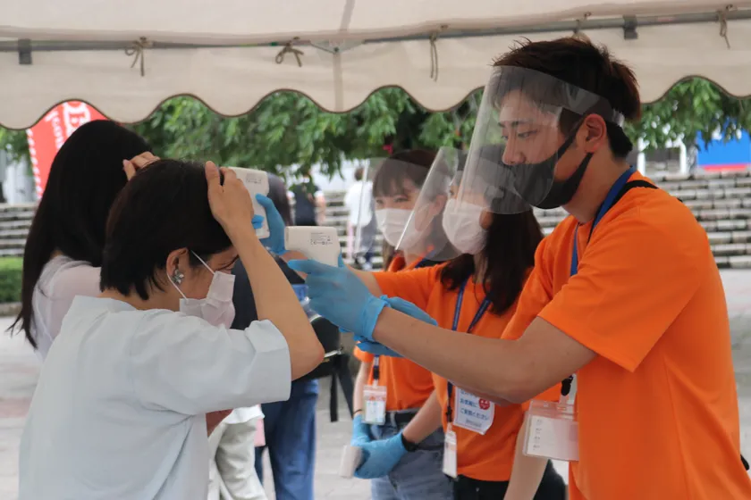 ご来場者の皆様に検温を実施
