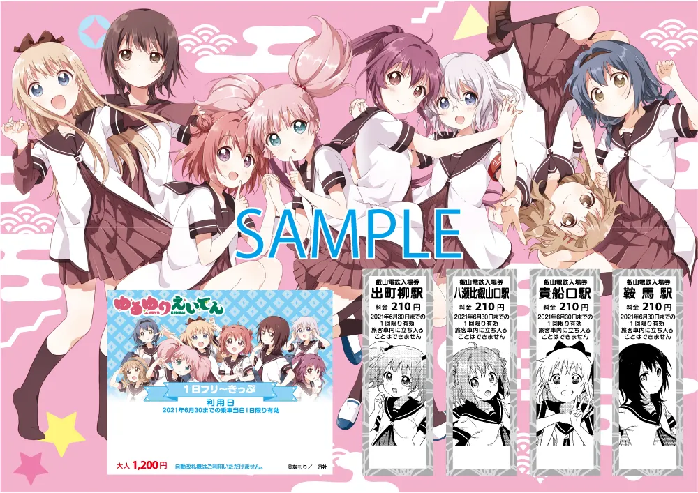 ・7月4日(土)よりラッピング車両を運行開始!コラボポスターの掲出! ・7月24日(金・祝)よりコラボきっぷの発売開始! キャラクタースタンディPOPの設置! 「えいでん×ゆるゆり コラボフェスタ」の開催!