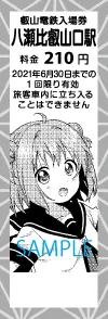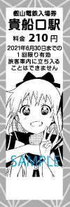 なもり氏、描き下ろしの1日乗車券(7.8cm×9.6cm)と硬券タイプの特別入場券(3.0cm×8.8cm)と特典台紙のセットを以下の通り発売します。