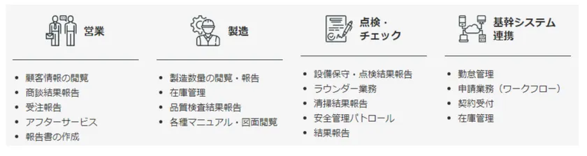 昨今、現場の利便性向上のため、QRコードの活用や位置情報の取得、オフラインでの利用といったニーズが高まるにつれ、スマートフォンやタブレットといったモバイル端末を業務で活用する機会が増えています。