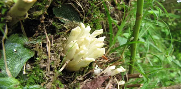 日本では北海道~九州の山地の木陰に生え、カシ類、アジサイ類などの樹木の根に寄生する植物です。高さは5~10cmで、どの根からも出てくるわけではなく、条件があった限られた場所でのみ見られます。花色は、他の植物に寄生して養分を得ているため、葉緑素がなく白色です。千葉県清澄山で採集され、花がウツボグサと似ていることからこの和名がつけられました。開花後に花が黄色に変色するため、「オウトウカ(黄筒花)」ともいわれます。兵庫県立 人と自然の博物館の客員研究員である黒崎史平氏によると「キヨスミウツボは寄生植物であるため、栽培が非常に困難で、本来自然度が高い場所でしか見られない。六甲高山植物園でキヨスミウツボを観賞できるのは、本園が自然を活かした環境である事に起因しており、植物園の中でも稀である。」との事です。