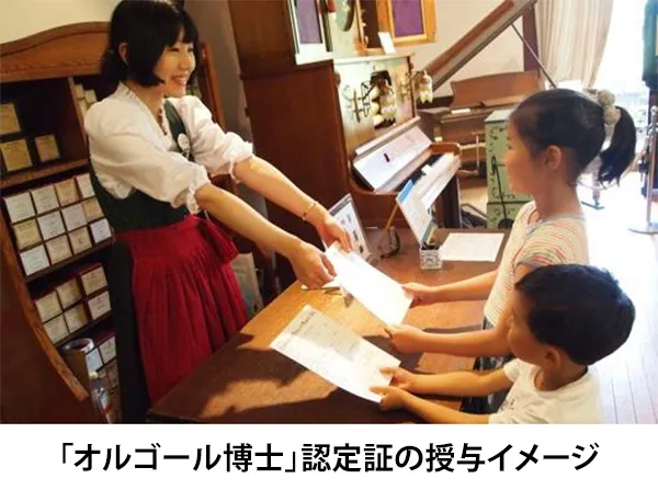 オルゴールの歴史や仕組みが学べるワークシートを用意。館内の展示を見てワークシートを完成させると、夏休みの宿題として提出できるのに加え、オルゴールミュージアム館長発行のオルゴール博士の認定証が貰えます。