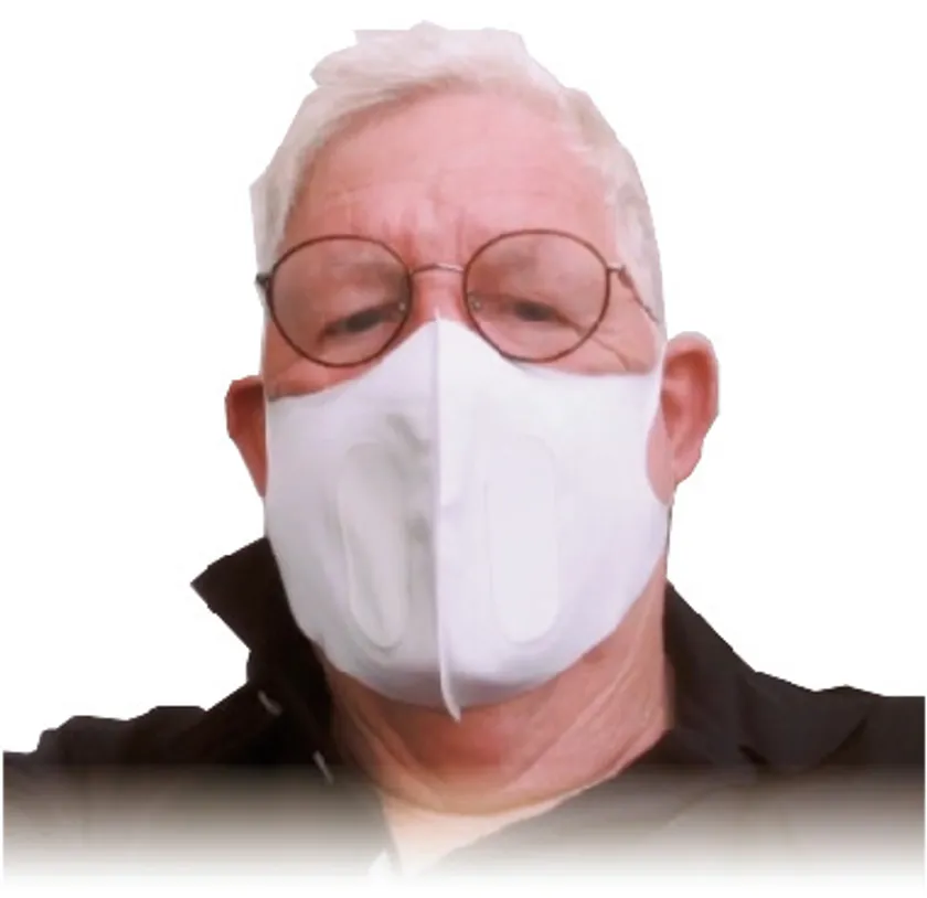 レギュラーサイズよりおよそ1cm口元の空間を広げることにより、会話や呼吸のしやすさはもちろん、鼻筋の高い外国人の方でも楽に装着していただけます。