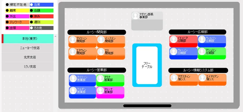 ・座席表や組織図などユーザー任意のレイアウト上に、メンバーの状況をwebブラウザにて表示