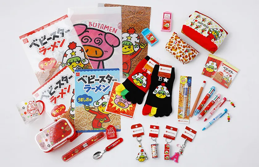 ベビースターやブタメンをモチーフにした小物やステーショナリー(イメージ)