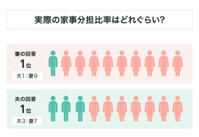 1. 現実の家事分担、夫と妻で認識に「ズレ」がある?