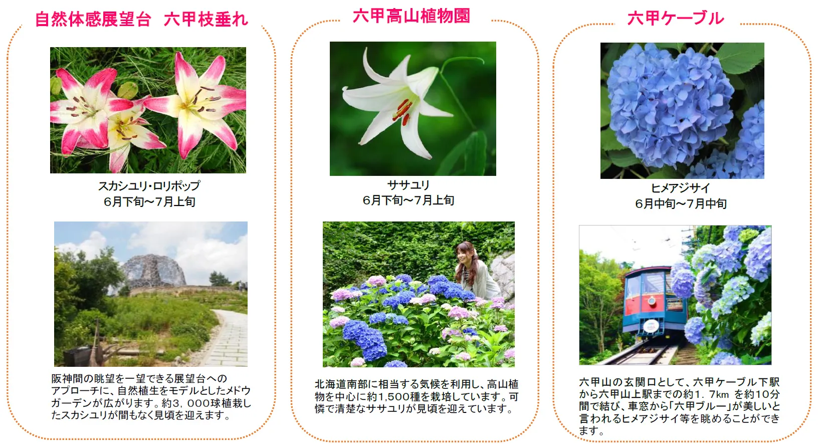 緑が美しく、花々が見ごろを迎える初夏の六甲山で、個性豊かな庭園の花々やグルメを楽しめる「神戸 六甲山花さんぽ」を開催しています。