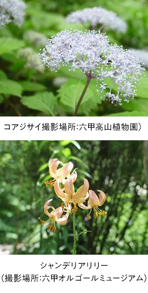 現在、「神戸 六甲山花さんぽ」の会場である六甲高山植物園では清楚なササユリ、六甲オルゴールミュージアムでは華やかなシャンデリアリリー、六甲ケーブルでは沿線ではブルーが美しいアジサイが楽しめます。また六甲ガーデンテラス内、自然体感展望台 六甲枝垂れではたくさんのスカシユリが蕾を膨らませ始め、まもなく見頃を迎えます。