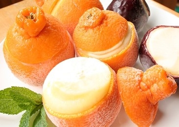 熊本 アイスクリーム専門工房 ついんスターのデコポンを余すことなく使用したアイス。サクサクのシャーベットとミルキーなアイスの2つの味を楽しむことができます。