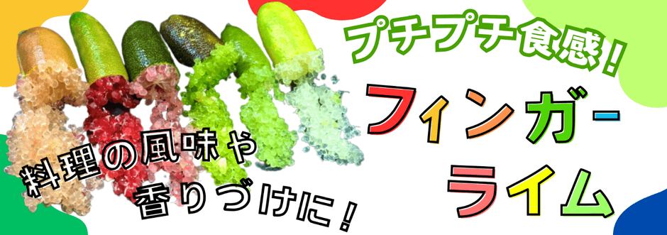 「フィンガーライム」とは指のような形をした柑橘類で、中にはキャビアのような小さな粒が多く詰まっています。長さは4~8センチほどで、色は赤や白、緑など様々です。色によって味や香りが異なるのも特徴です。