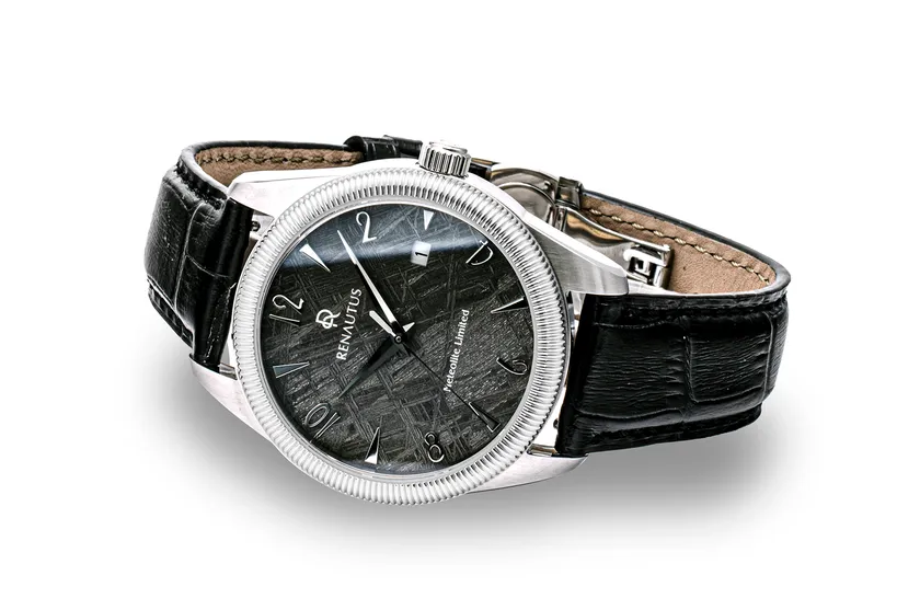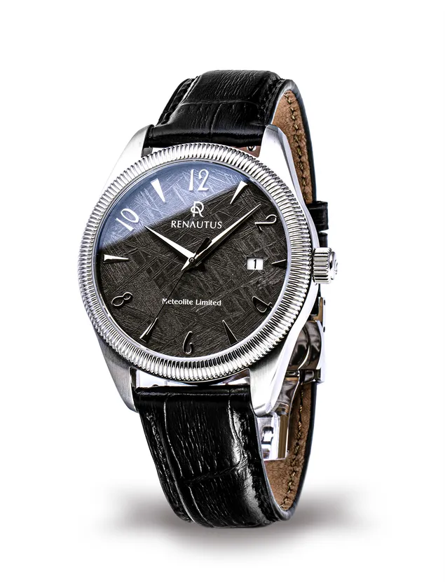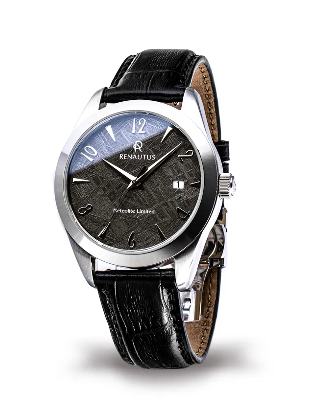 ルノータスのハイエンド機械式モデル、クラシックオートマチック40に希少なメテオライト(隕石)を僅か0.4mmにカットし文字盤に用いたリミテッドモデル。メテオライトは地球上では再現不可能とされるウィドマンシュテッテン構造模様が特徴とされ、一つ一つが異なる模様を持つ。腕時計の心臓部となるムーブメントには、信頼のスイス・ETA製を使用し末永く使用いただける品質に仕上げました。