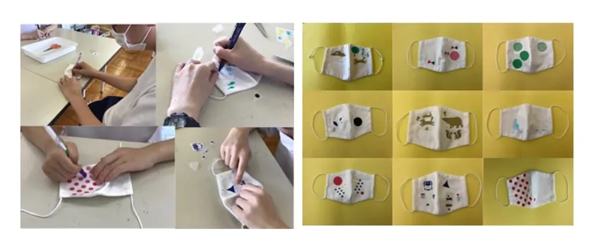 アイロンを使用しないことから安全性も高く、生徒の皆さんも思い思いにデコレーションを楽しんでいただき色とりどりのオリジナルマスクが出来上がりました。