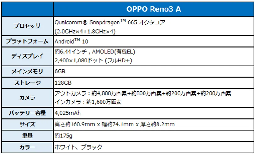 【OPPO Reno3 A】