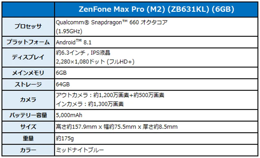 【ZenFone Max Pro (M2) (ZB631KL) (6GB)】