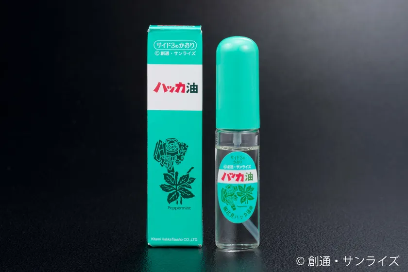 北見ハッカ通商が展開する「ハッカ油」とGUNDAM Cafeのコラボレーション商品です。パッケージデザインには「ハッカ油」独特のノスタルジックなテイストで量産型ザクが描かれています。