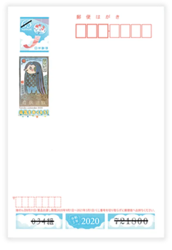 当社はがきのアマビエイラストは、版画家 渡辺トモコさんの作品を、ご厚意で印刷させていただいています。渡辺トモコさんは画家・版画家として独自の作風の創作活動を行っていて、イラストレーターとしても雑誌や書籍・アパレル等に作品を提供しています。