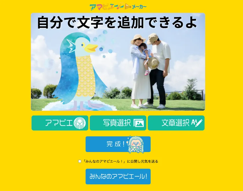 写真とアマビエイラストに一言を加えたSNS用の画像を作ることができる 「アマビエールメーカー」も稼働開始!