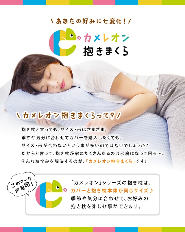 季節や気分に合わせて楽しむ抱き枕。姿を変える様子がまるでカメレオンのようであることから名付けました。