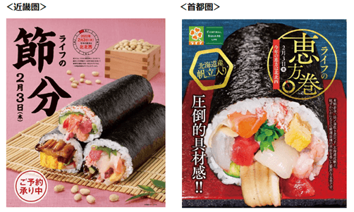 “おいしい” “ワクワク” “ハッピー” をお届けするライフコーポレーションは、2月3日(木)の節分に、ライフオリジナル恵方巻を店頭販売いたします。