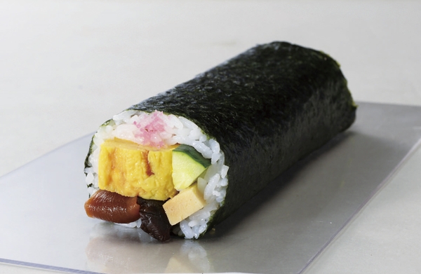 かんぴょう・高野豆腐・玉子焼き・おぼろなど7種類の具材を盛り込んだ恵方巻。
