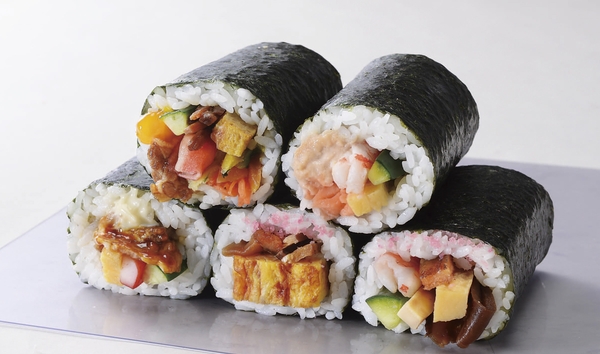 近畿圏では海老・たたきまぐろ・サーモンなど5種類の海鮮がたっぷりと入った「彩り海鮮太巻」など最大26種類の恵方巻を、首都圏では北海道産帆立・まぐろ・ねぎとろ・サーモンなど海鮮がたっぷり入った「北海道産帆立入り海鮮太巻」など、最大13種類の恵方巻をバリエーション豊富に取りそろえます。
