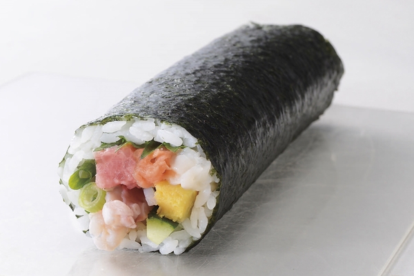 北海道産帆立・まぐろ・ねぎとろ・サーモン・とびっこなど海鮮がたっぷりと入った具だくさんの太巻。