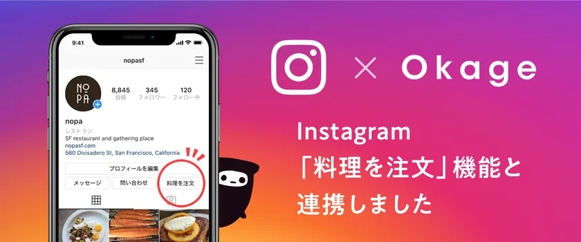 写真や動画をシェアして繋がる世界最大級のSNS「Instagram」が新型コロナウイルス感染症の影響を受けている国内の中小ビジネスを支援する取り組みの一環として導入している「料理を注文」機能のパートナーとして、Okage株式会社(本社:東京都中央区、代表取締役CEO:内田 善久、以下「当社」)が提供するモバイルオーダー&ペイシステム「Okage Go店外版」が採用されました。