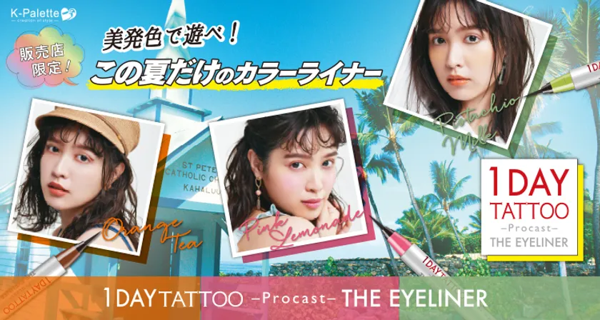1DAY TATTOO プロキャストアイライナーから、 夏の限定3色「オレンジティー」、「ピンクレモネード」、 「ピスタチオミルク」が7月17日に登場!